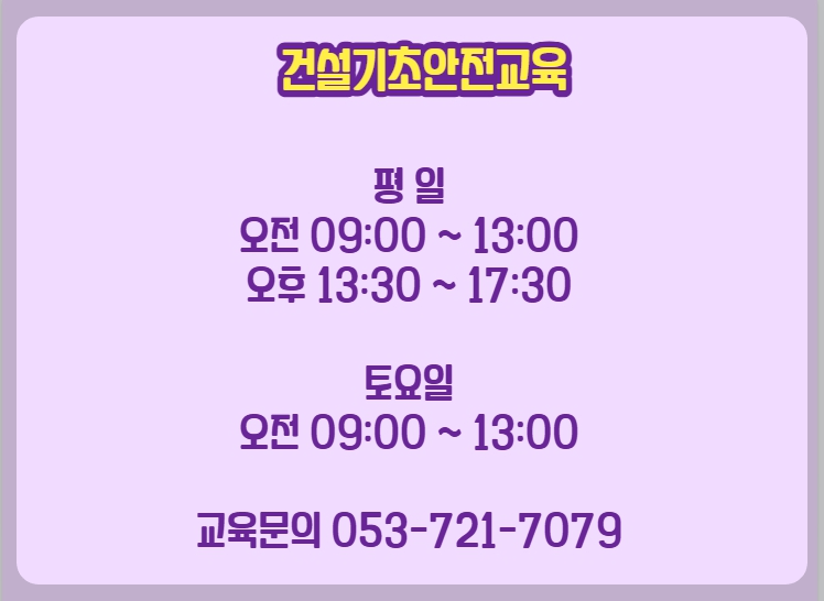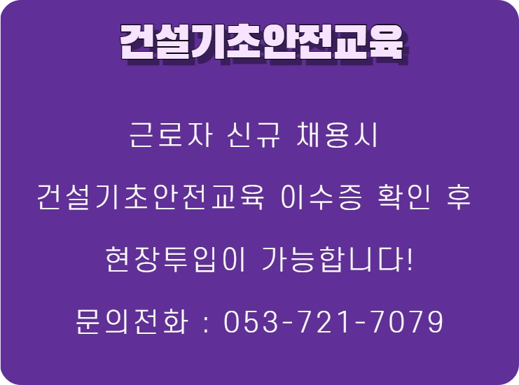 대한안전교육원 건설기초안전교육 대구경북 교육장 건설현장 안전교육 4시간 안전교육 건설현장 출입전 채용전 받는 법적 안전교육 입니다.