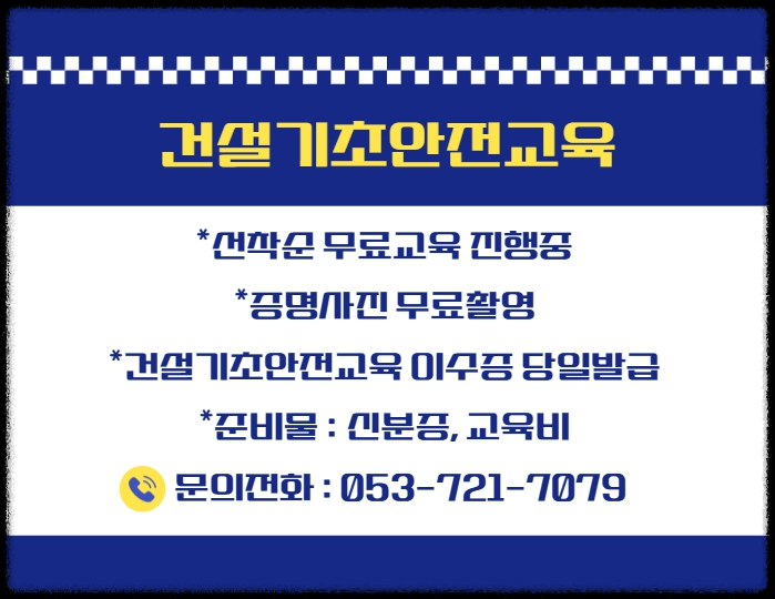 대한안전교육원 건설기초안전교육 대구경북 교육장 건설현장 안전교육 4시간 안전교육 건설현장 출입전 채용전 받는 법적 안전교육 입니다.