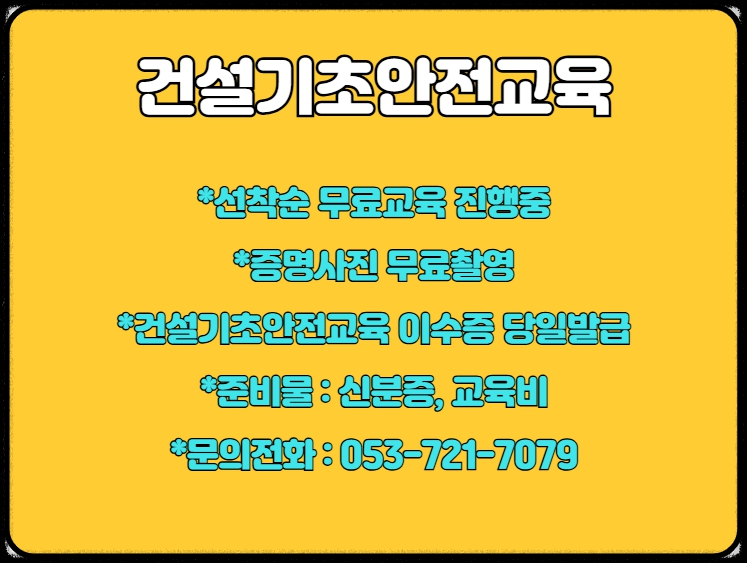 대한안전교육원 건설기초안전교육 대구경북 교육장 건설현장 안전교육 4시간 안전교육 건설현장 출입전 채용전 받는 법적 안전교육 입니다.